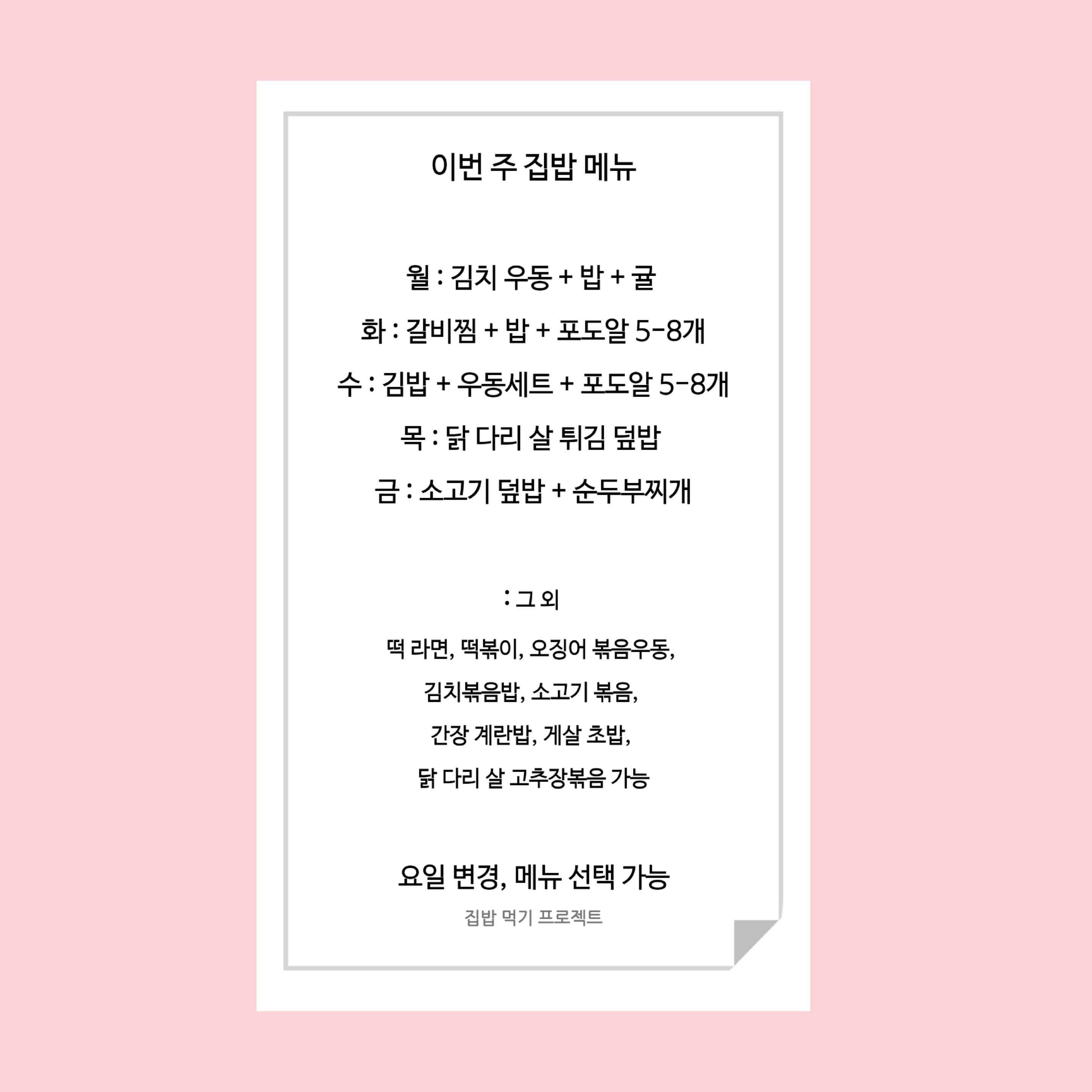 이번 주 집밥 메뉴
