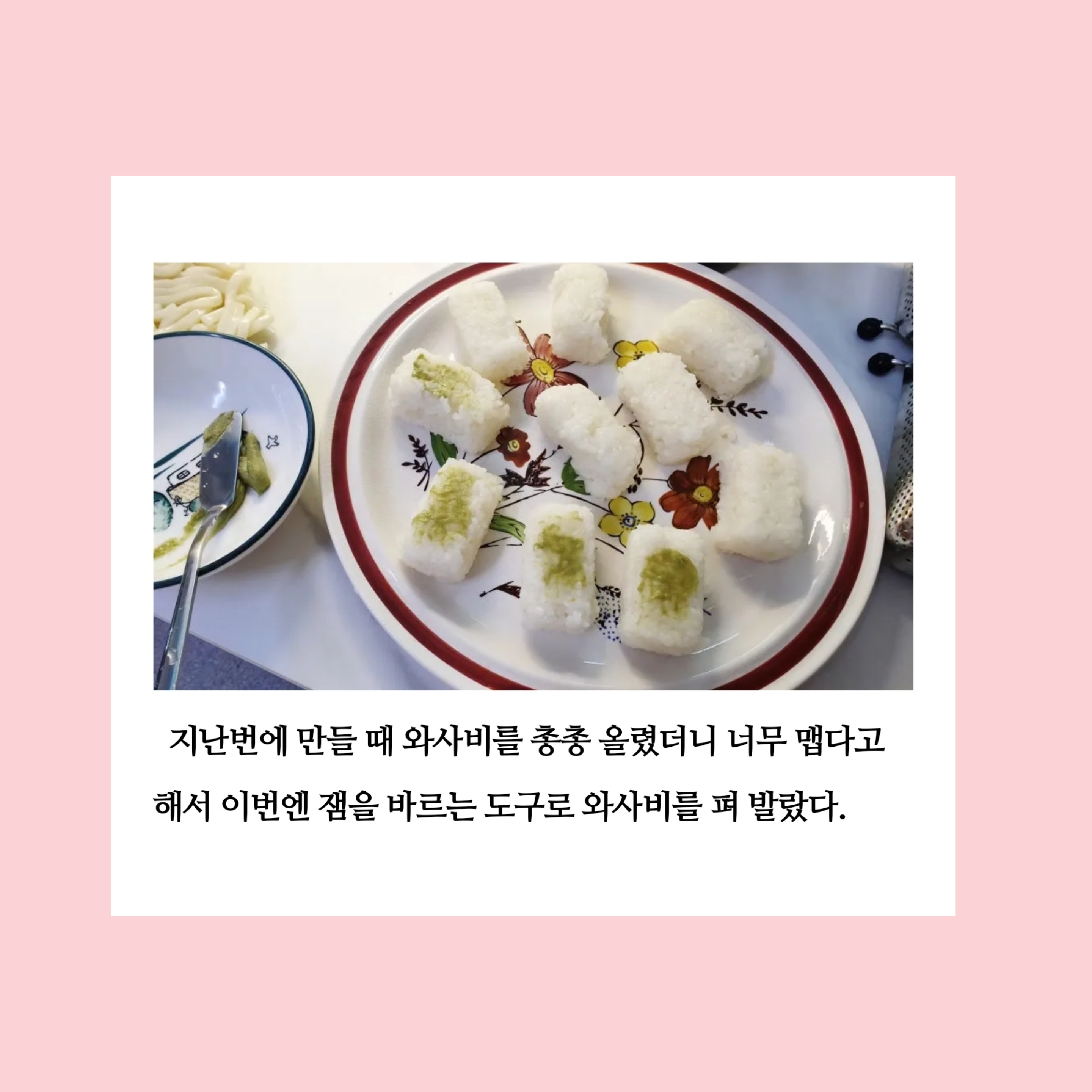 📍대용량 촛물 만들기 : 식초 종이컵 1컵, 설탕 종이컵 3분의 2컵, 소금 한 스푼, 물에 씻은 다시마 한 조각. 약불로 설탕과 소금 녹이기, 다 녹으면 다시마 건지기, 그릇에 옮겨 담고 식힌 후 보관. 냉장고에 보관하면서 초밥이 먹고 싶을 때마다 밥에 뿌려 초밥을 만들면 된다. 우리 집은 기생충이 걱정돼서 익히지 않은 생선을 잘 먹지 않는다. 그래서 초밥도 집에서 만들어 먹기로 했다.